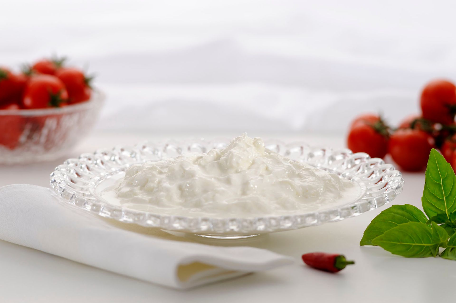 Der Name „Burrata” deutet auf die buttrige Konsistenz der schmackhaften und reichhaltigen Füllung hin, die aus gekneteter und -gezogener, mit Sahne verfeinerter Mozzarella besteht (Stracciatella).